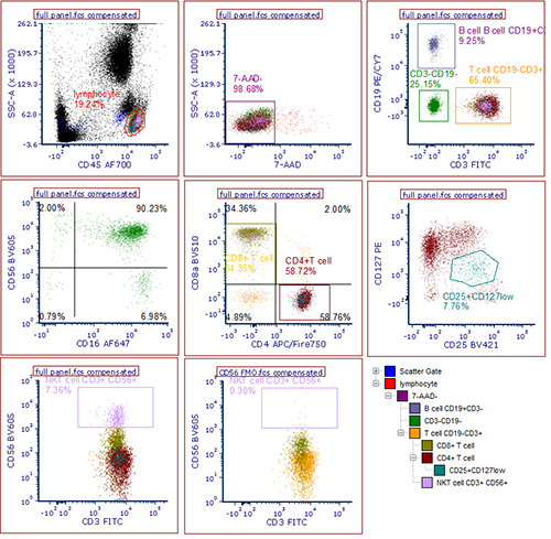 這次上機課程分為3個部分:T/B/NK/NKT/Treg10色檢測;Th1/Th2檢測;LEGENDplex多因子DEMO實驗。上機課程中達科為技術團隊為大家詳細介紹本次實驗的相關內容,包括: marker選擇、panel設置、對照選擇/設置,protocol染色操作及注意事項。關于操作部分,表染及胞內染色的 DEMO實驗之后詳細演示了儀器電壓補償的調節,同型對照及FMO對照的應用等。