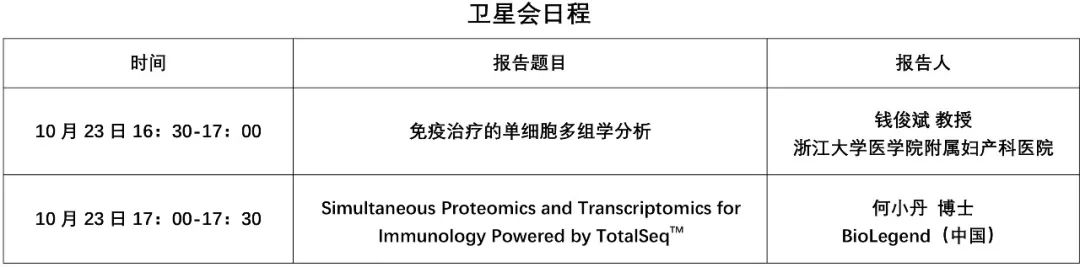 除了日常的展臺活動,我們誠摯的邀請您10月23日下午16:30-17:30在腫瘤免疫與腫瘤免疫治療第七分會場參加我們的衛星會,達科為&BioLegend將為大家帶來主題為“TotalSeq 技術助力免疫學研究及免疫治療的單細胞多組學分析”的衛星會,以下是會議日程安排,歡迎您準時蒞臨,現場還有精美禮品,先到先得哦!