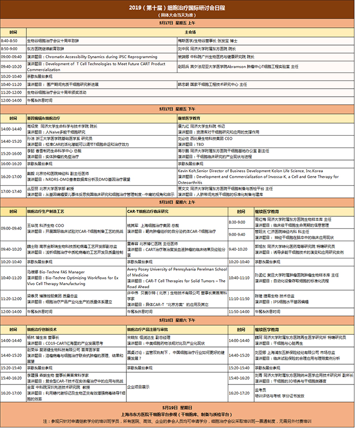 本次會(huì)議的主題是“加快中國(guó)細(xì)胞治療產(chǎn)品的上市”,設(shè)置主會(huì)場(chǎng)、基因編輯與細(xì)胞治療專場(chǎng)、CAR-T與干細(xì)胞臨床研究專場(chǎng)、細(xì)胞治療生產(chǎn)制造工藝專場(chǎng)和細(xì)胞治療產(chǎn)品注冊(cè)與臨床申報(bào)專場(chǎng)。