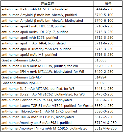 而今天小達君主要給大家介紹一下Mabtech另外一條產(chǎn)品線---抗體