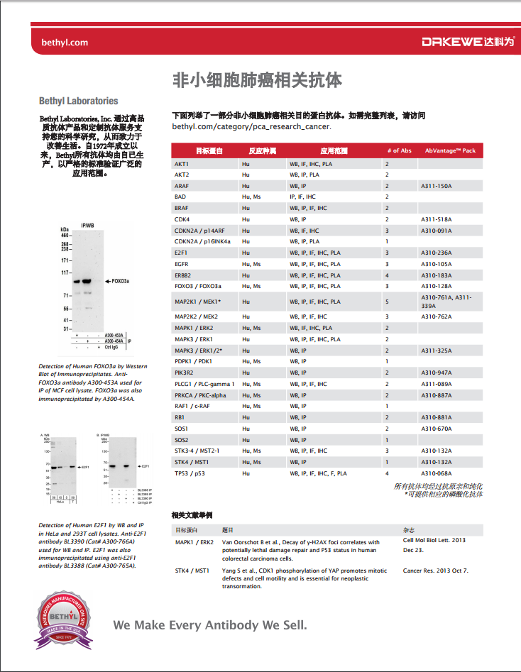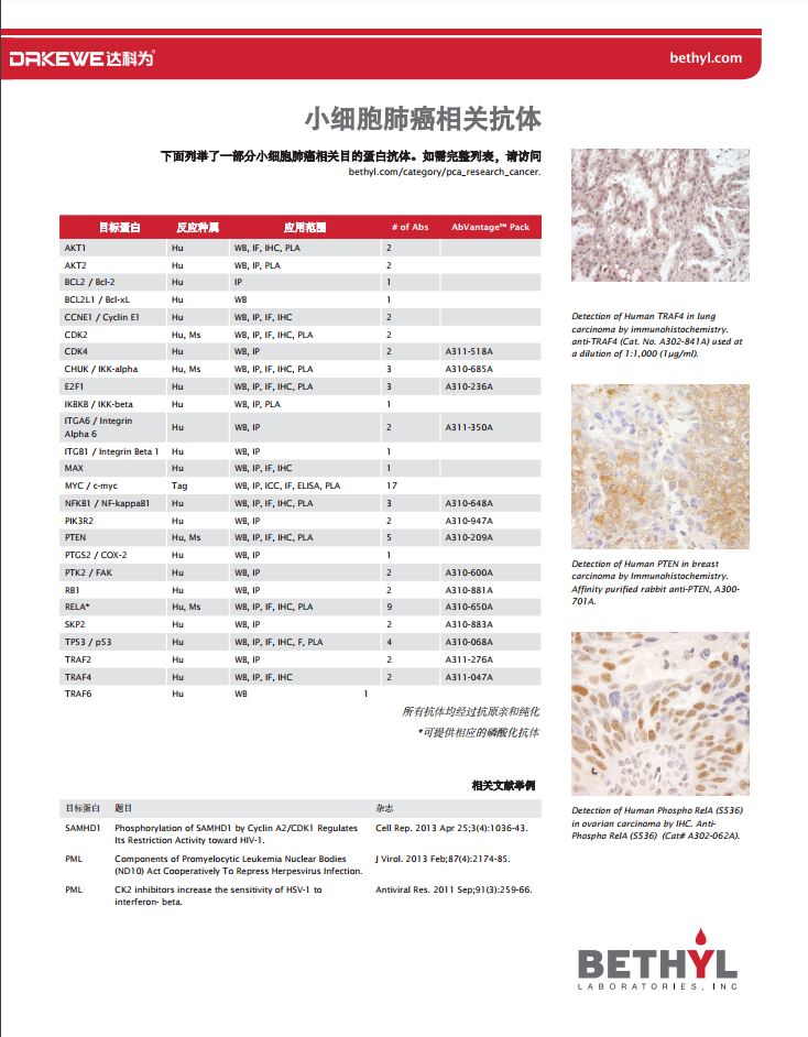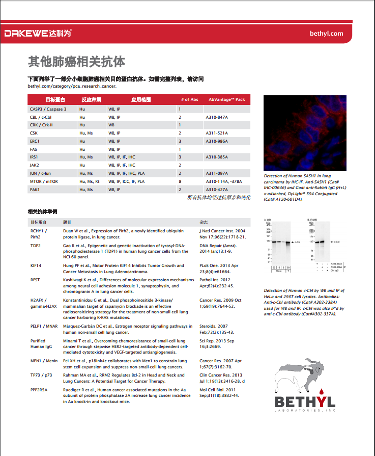 Bethyl --肺癌相關研究抗體