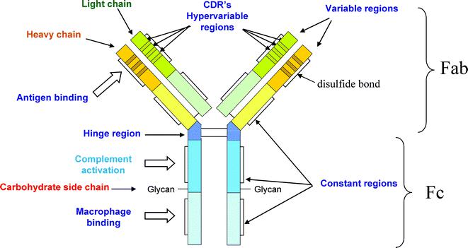 這對Fc片段或重鏈具有特異性:這類抗體和重鏈的Fc部分反應,一次它們是類別特異性的(即gamma鏈特異性抗體只與IgG反應,mu鏈特異性抗體只識別IgM,依此類推)。