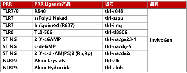 天然免疫專家InvivoGen可提供包括TLR7/8、RIG-I、炎癥小體NLRP3等一系列天然免疫通路的刺激劑/抑制劑、相關報告基因細胞和檢測試劑等。